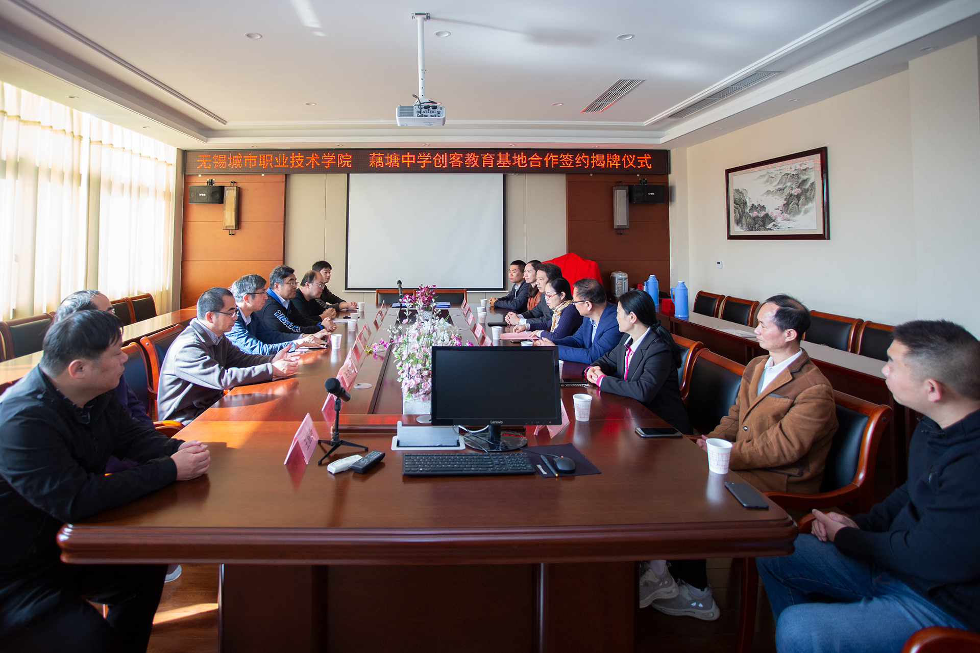 10月23日上午,无锡城市职业技术学院与无锡市藕塘中学合作共建“青少年创客教育基地”签约暨揭牌仪式在藕塘中学会议室举行。我校副校长梅亚萍率科技处、机电工程学院、物联网工程学院负责人一行出席仪式。仪式由藕塘中学副校长马建荣主持。