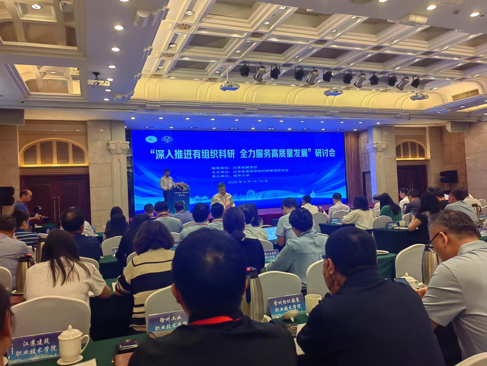 9月15日,科技处处长李继明带领两位老师参加了由江苏省教育厅指导,江苏省高等学校科研管理研究会主办,扬州大学承办的“深入推进有组织科研全力服务高质量发展”研讨会。江苏省教育厅副厅长袁靖宇出席会议并讲话,扬州大学党委书记焦新安出席会议并致辞。会议由江苏省高等学校科研管理研究会理事长、南京医科大学副校长顾民,副理事长、扬州大学副校长赵文明主持。来自全省100余所高校分管校领导、科研部门负责人约200余人出席会议。