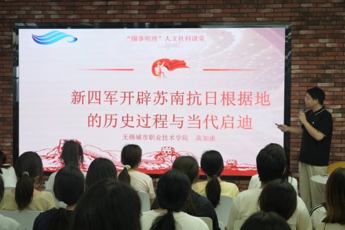 近日,无锡市“锡事明理”人文社科讲堂2025年第三季度活动在我校图书馆举办。马克思主义学院高加康老师以“新四军开辟苏南抗日根据地:历史进程与当代启迪”为主题开讲。